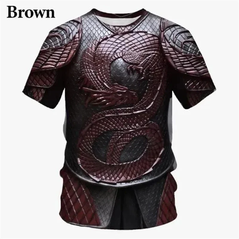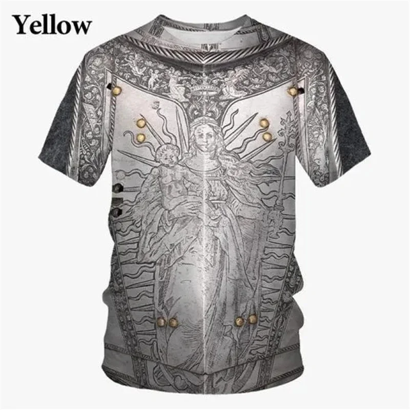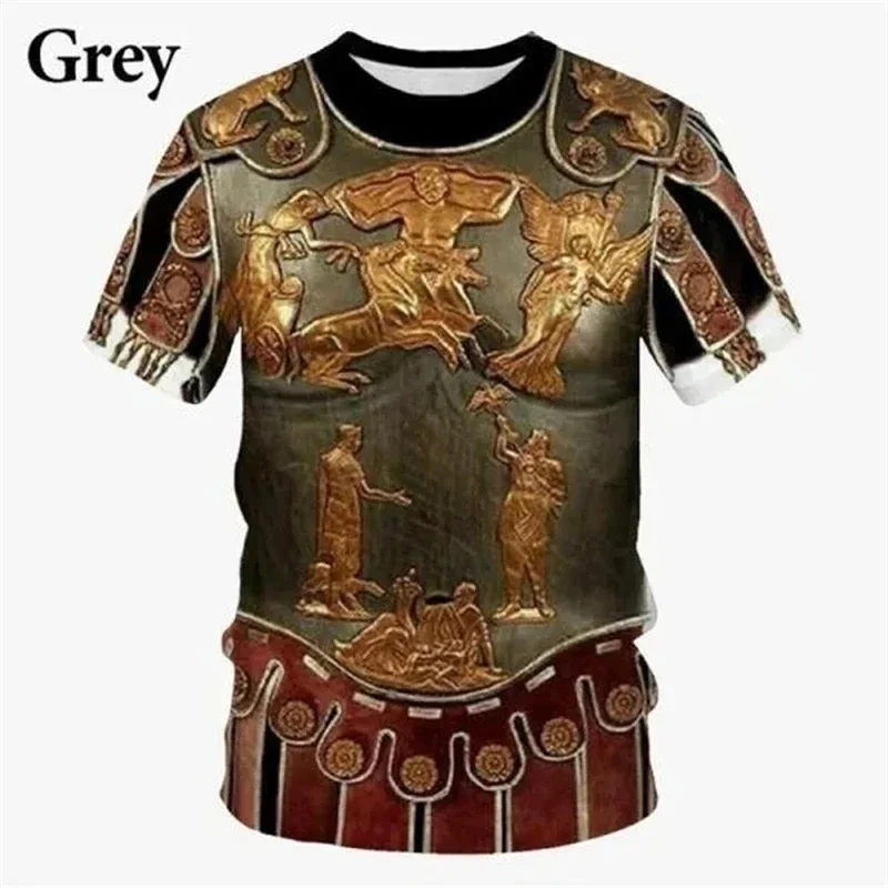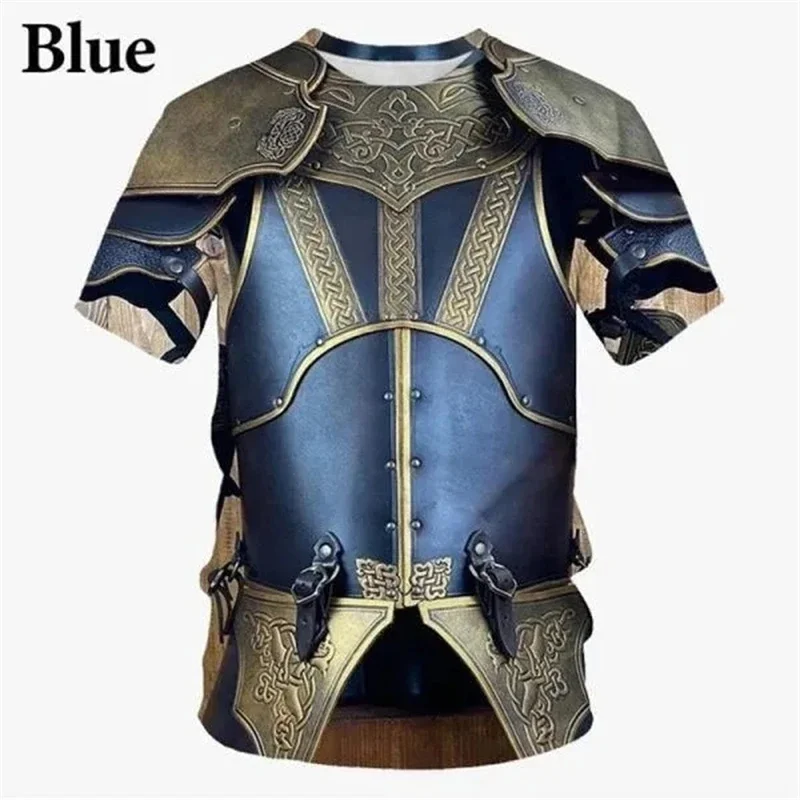 3D Printed Medieval Armor T Shirt For Men Cosplay Pattern Tees Casual Fashion Round Neck Short Sleeve T-Shirts Oversized Tops