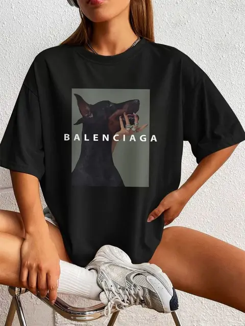 Street Women T-Shirts Doberman Printing Cotton Tops Soft Loose Tees Summer Casual O-Neck Short Sleeve Fashion Female Clothes